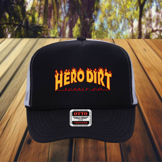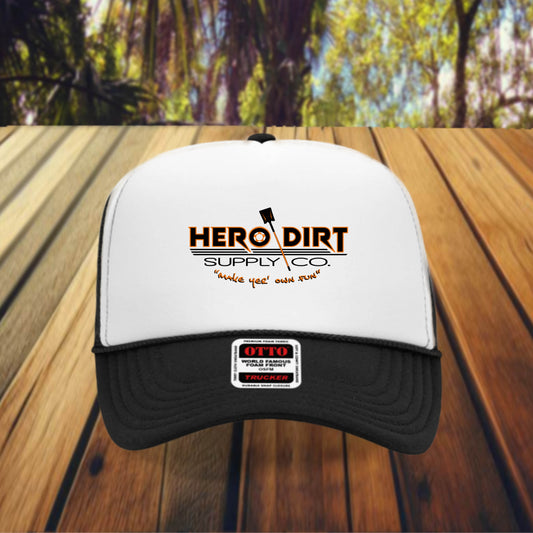 Otto 5-Panel Foam Front Trucker - Black/White/Black - Hero Dirt Supply Co. Corp Logo