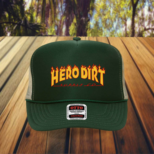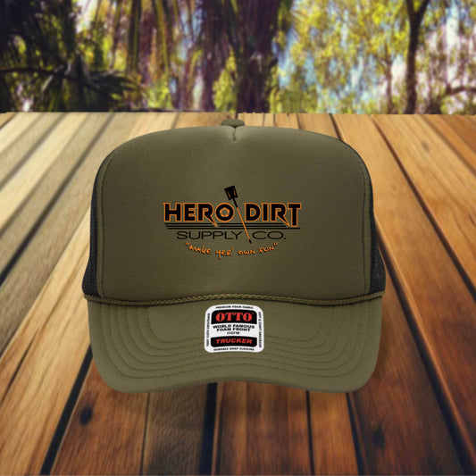Otto 5-Panel Foam Front Trucker - Olive/Black - Hero Dirt Supply Co. Corp Logo