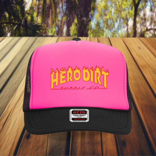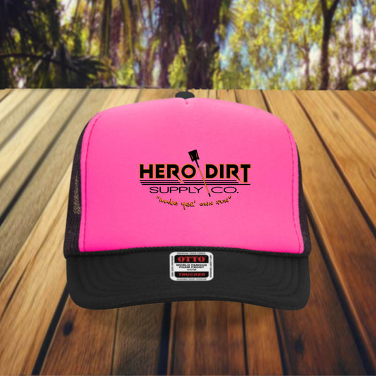 Otto 5-Panel Foam Front Trucker - Pink/Black - Hero Dirt Supply Co. Corp Logo